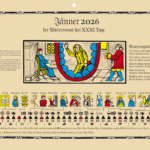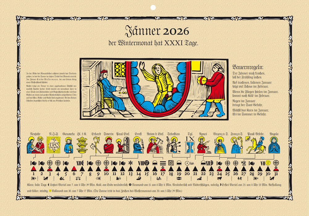 12 Monatsblätter, 1 Blatt Zeichenerklärungen, mit Aufhängekordel